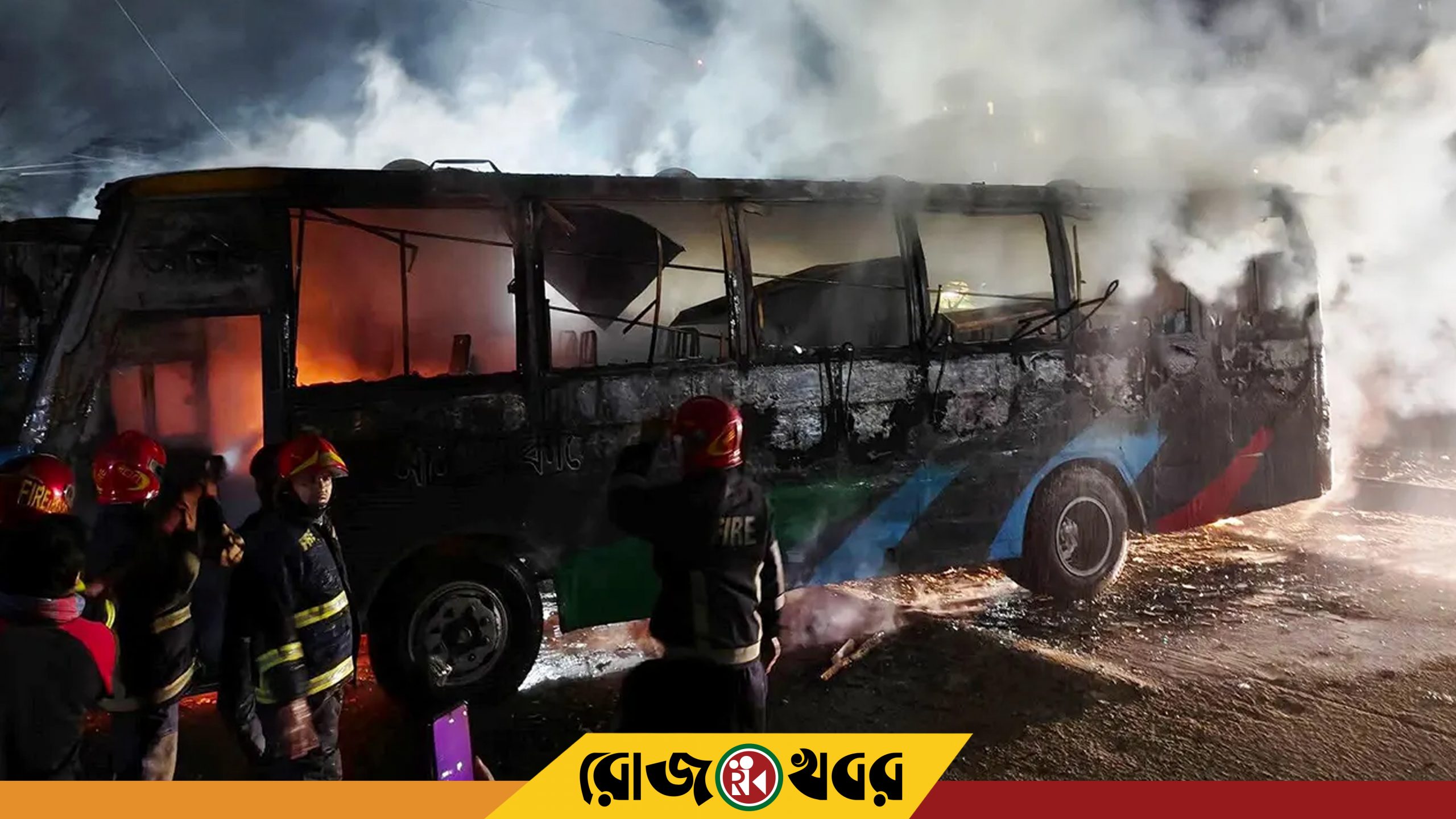 রাজধানীর ডেমরায় একটি বাসে অগ্নিকাণ্ড