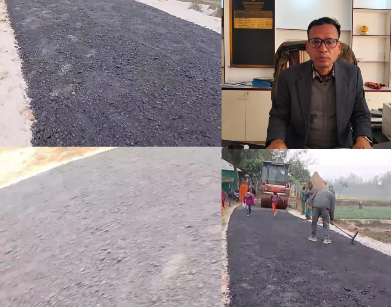 জলঢাকায় গ্রামীণ উন্নয়ন প্রকল্প পাকাকরণ রাস্তার কাজের তদারকি করছেন প্রকৌশলী তারিকুজ্জামান